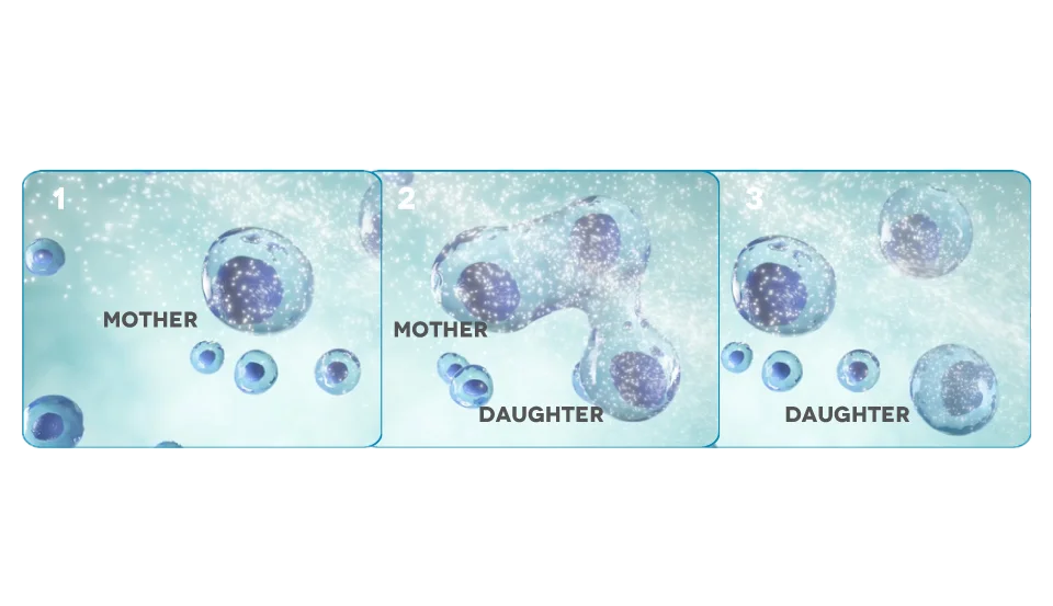 El cambio en el potencial de membrana de las células madre induce su replicación. La célula madre se regenera de manera asimétrica, creando dos células madre llamadas “madre” e “hija”.