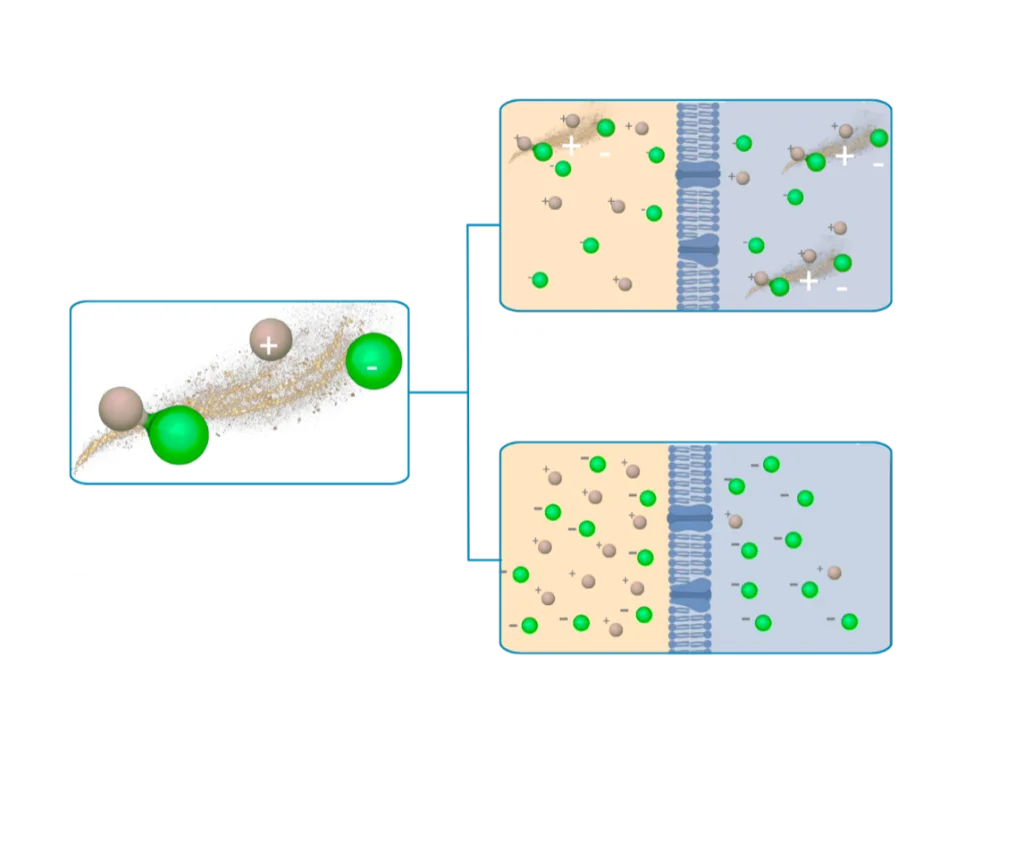 2. Modifica la concentración de iones en la matriz intra y extracelular de las células.